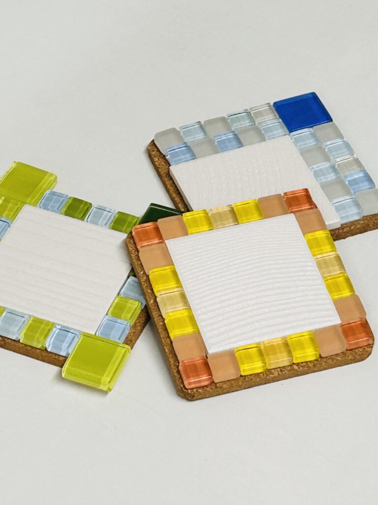 『エコカラットとモザイクタイルを使ったコースター作り』 LIXILの商材『エコカラット』を使ったコース―ターづくり。エコカラットはデザイン性と機能性を兼ね備えた内装用の壁材で、湿度調整・脱臭・有害物質の吸着の機能があり、デザイン性とメンテナンスにすぐれています。カラフルなタイルとエコカラットを組み合わせてオリジナルのコースターを作りませんか?
