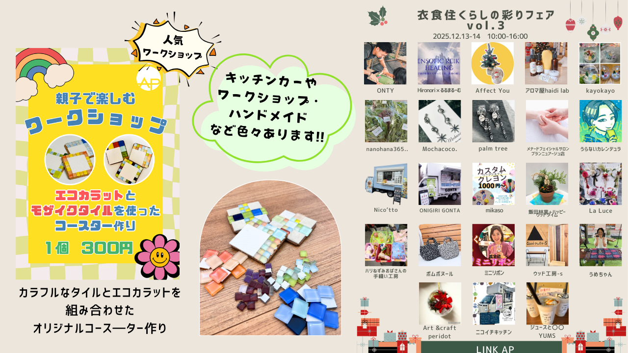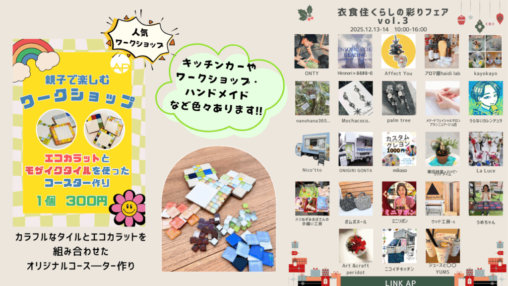 | 日時 | 2025年12月13日 (土) ~ 2025年12月14日 (日) 10:00-16:00 |