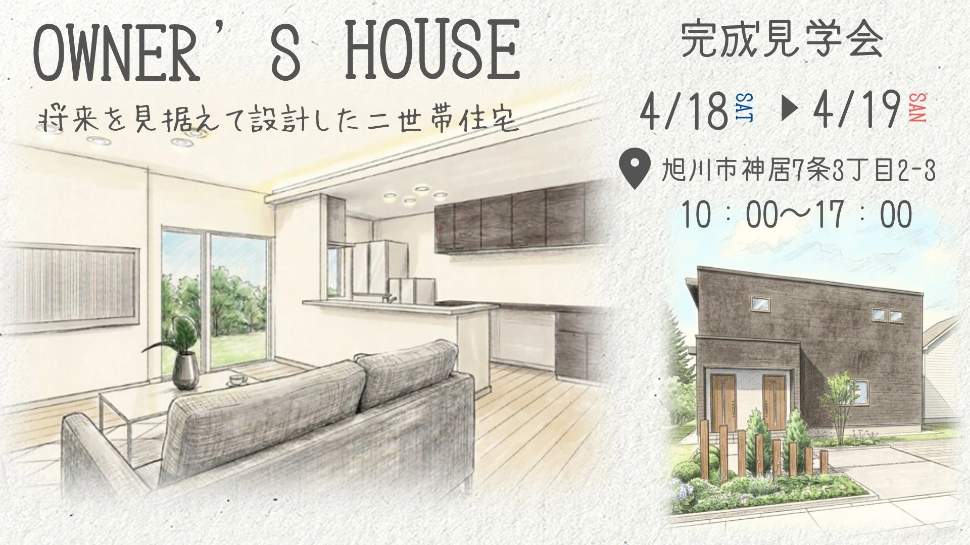 | 会場概要 | □所在地 旭川市神居7条3丁目2-3 □敷地面積 323.21㎡(95.57坪) □建築面積 85.29㎡(25.75坪) □1階床面積 81.98㎡(24.75坪) □2階床面積 81.98㎡(24.75坪) □延床面積 163.96㎡(49.50坪)