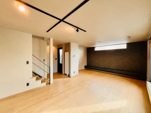 鉄骨階段が印象的な開放感のあるLDK