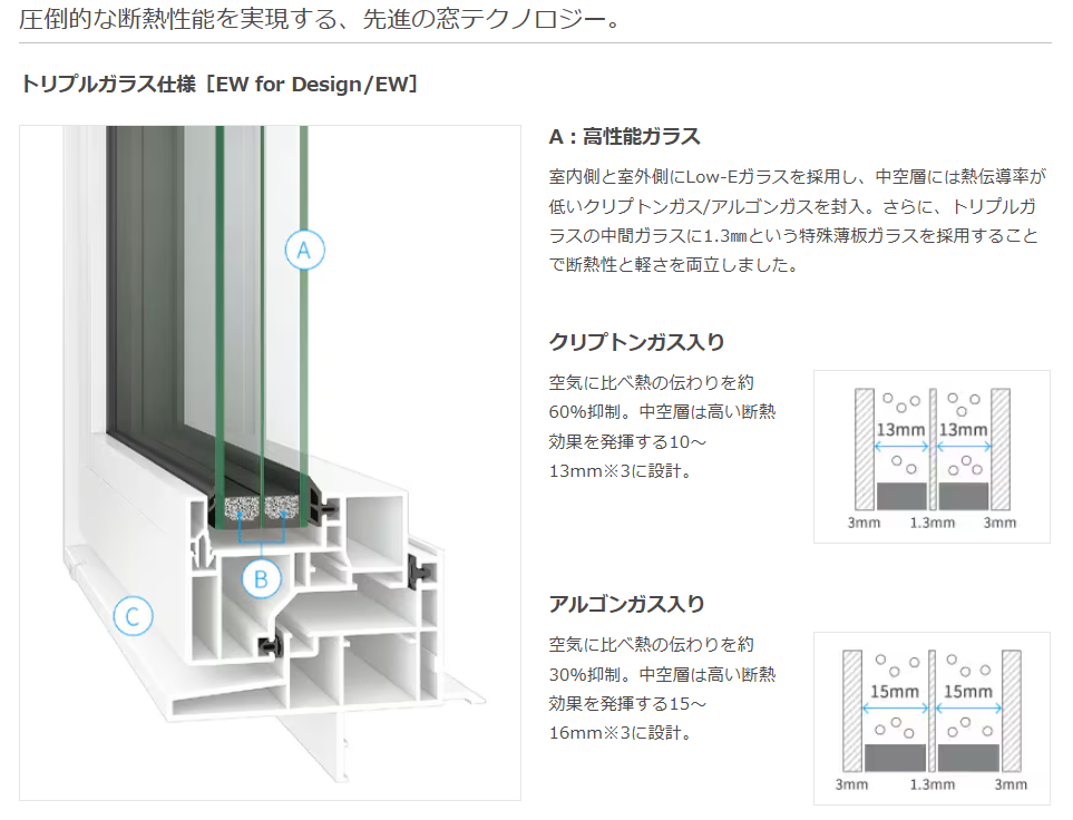 LIXIL(リクシル)の Low-E トリプルガラス 採用