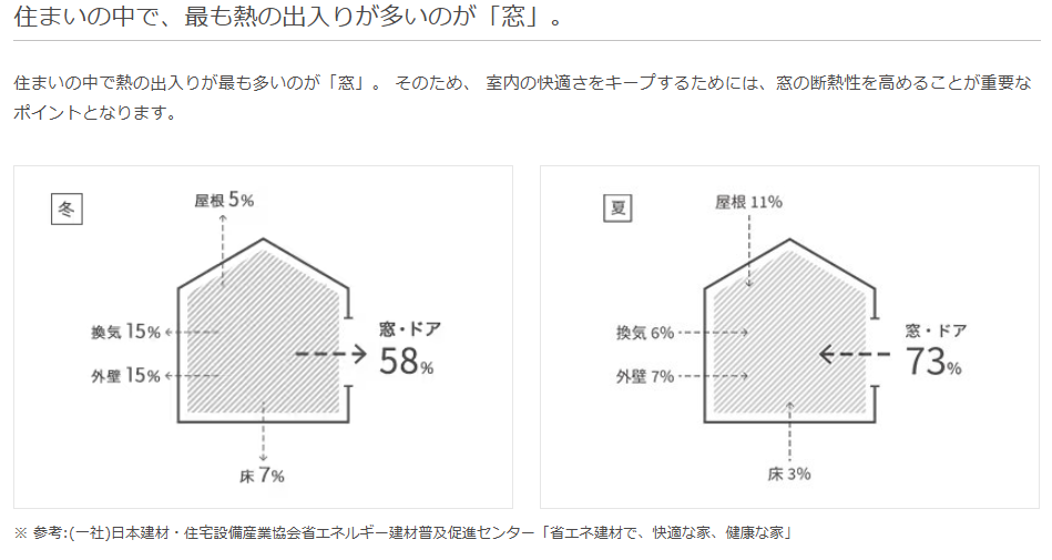 住まいの中で熱の出入りが激しい窓を交換することで、夏冬の室内温度が快適に♪